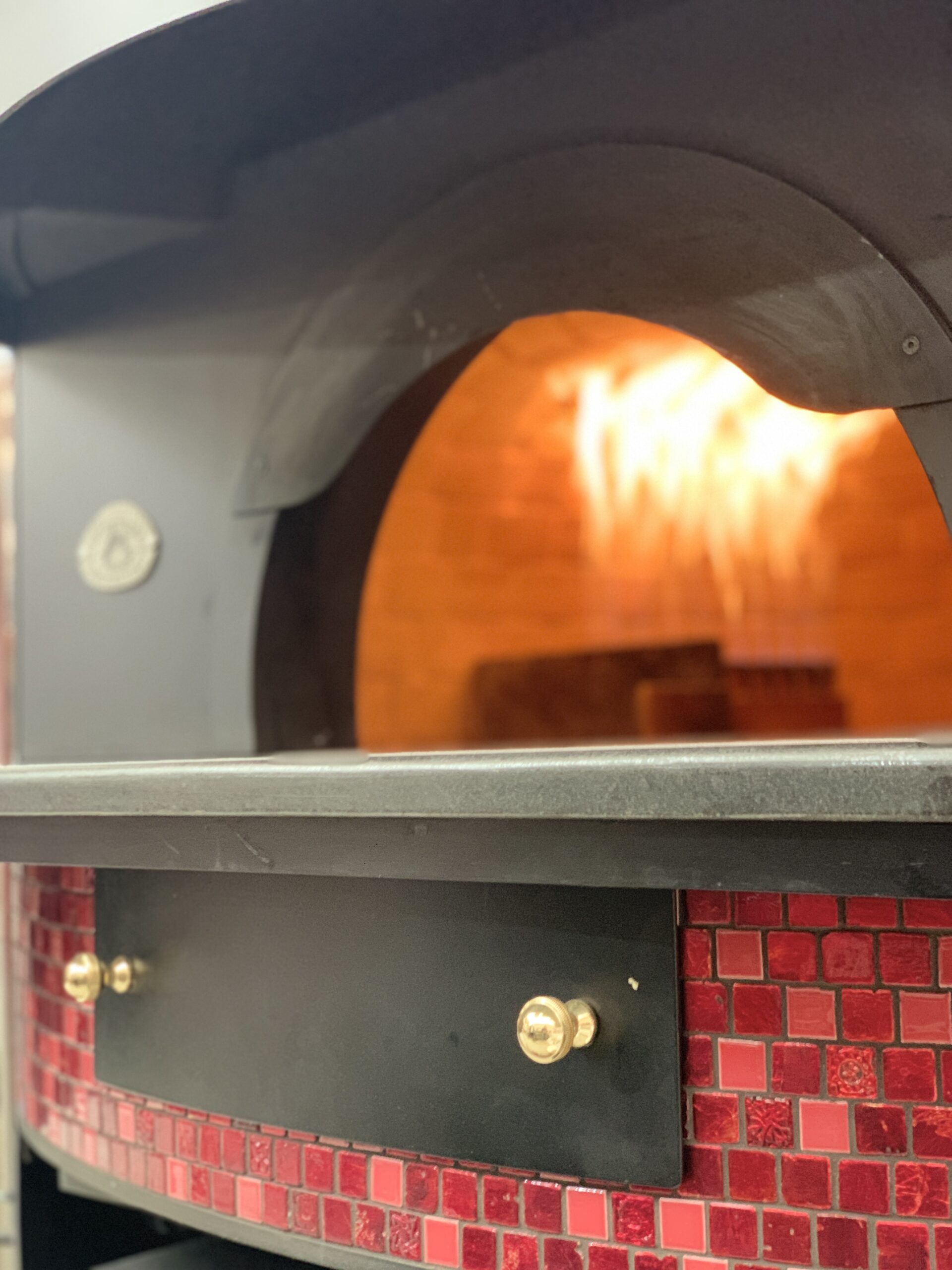 Using the gas burner we simulate the burning of wood into the oven heating up to 400°-500° C.