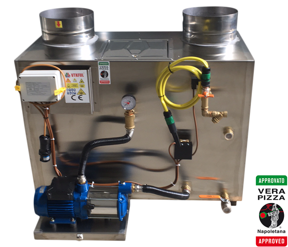 Smoke and soot purification system for wood-fired pizza ovens.
