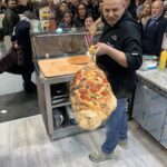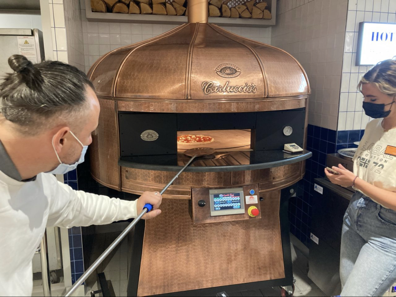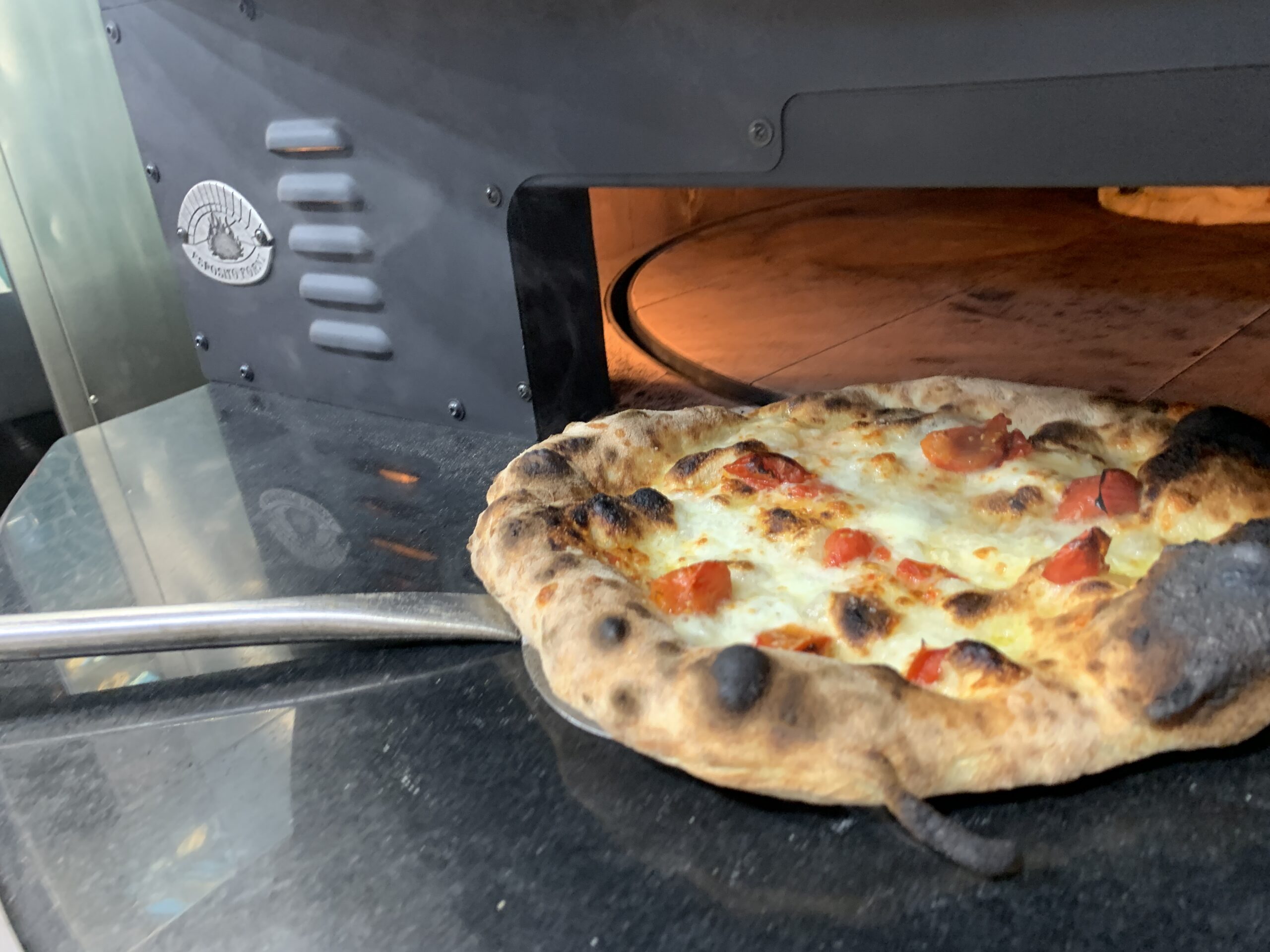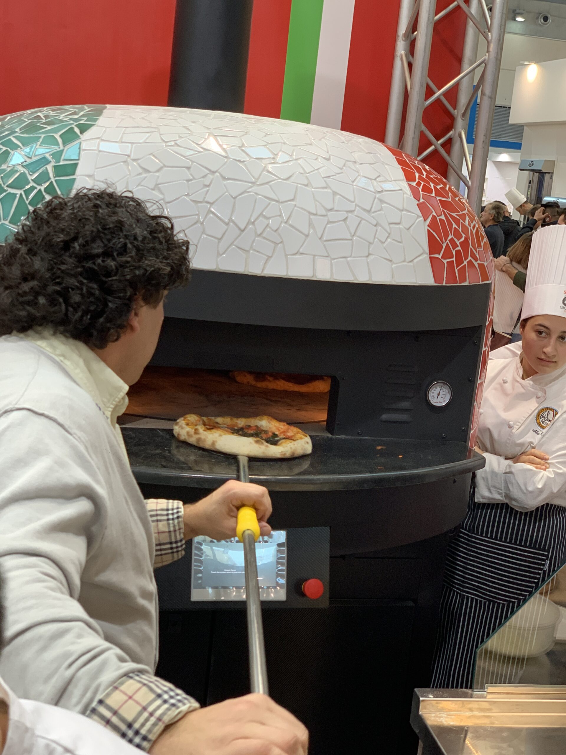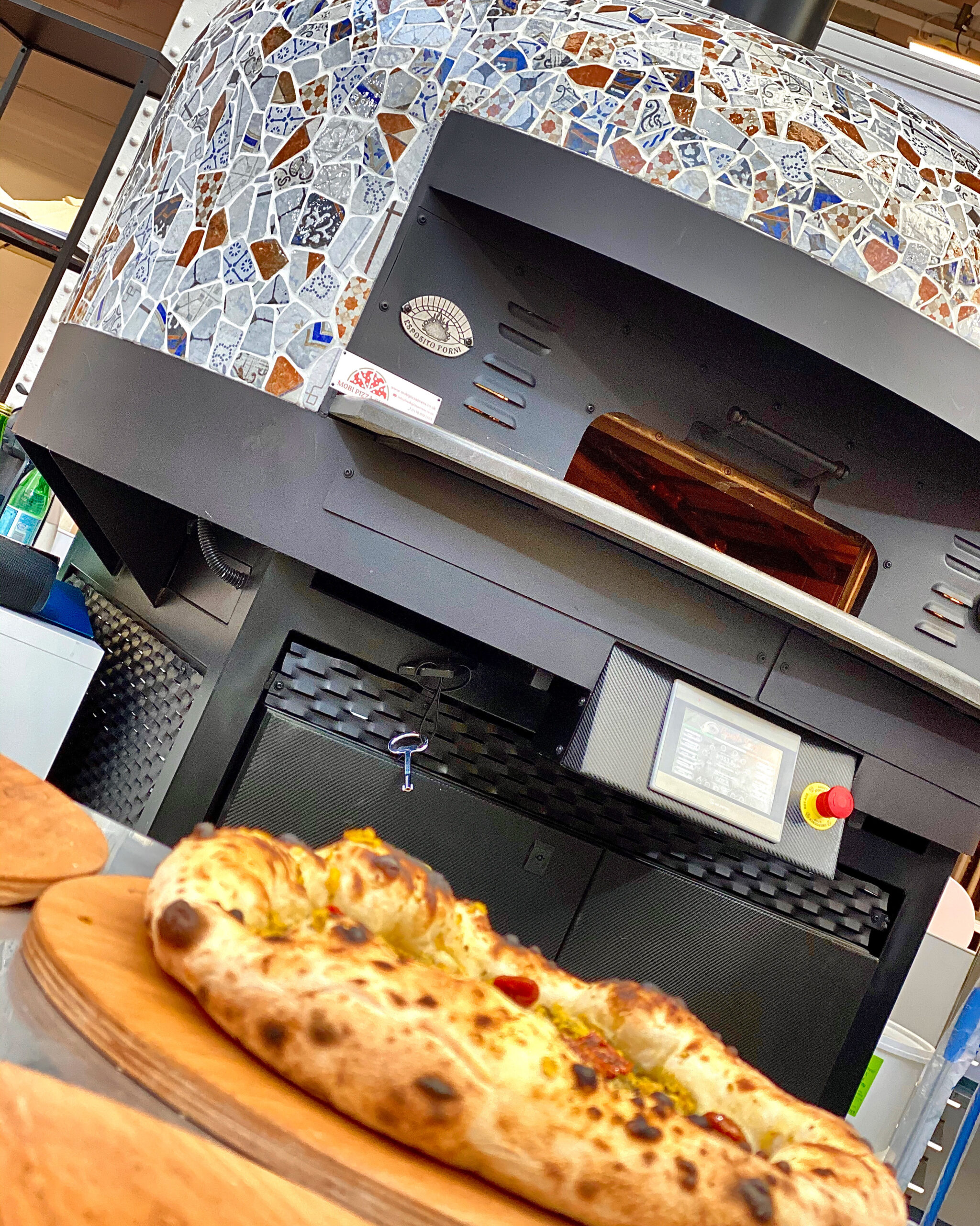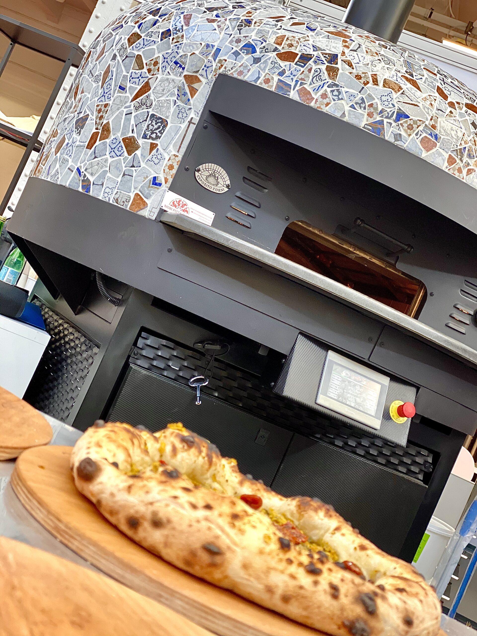 Electric Rotating Oven. The first electric oven with an always open-mouth, rotating floor and dome built with a traditional refractory bricks. It is the only electric oven which, although it is different, it reminds an authentic wood or gas dome oven. The strengths that characterise our oven are that it’s very easy to move with a simple pallet truck or by the installation of additional wheels and the fact that the oven arrives already assembled and ready for use. Cooking process is like in a real traditional wood-fired dome shape oven, meaning that heat is stored in refractory bricks resistant to 1200 ° C. Even after 12 hours from switching off, oven retains most of the heat. The electrical resistors resulting from a long research have been conceived and designed for cooking Pizza. By managing their electrical power, low energy consumption is also taken into consideration when enormous refractory mass is heated. The latest generation electronic components from high prestige industries are used in this oven what simplifies programming for the different ways of cooking suitable for the chef’s preferences. The cooking programs can be pre-set, customised, simplifying oven use to maximum so it can be used by any person. The oven is equipped with a cleaning drawer located below the resistance of the floor. The GOLD PLUS TOP thermal insulation reduces heat losses. The rotation of the floor is on demand and you can vary the speed. Installation is very simple by connecting a small extraction pipe to the central hood to allow vapours and odours to be removed. The finishes are multiple: classic dome entirely handmade using painted metals, stainless steel, mosaic, copper, brass, or materials supplied by the customers themselves to customise the design of your oven and making it unique and pleasing to the eye just like a traditional wood-burning oven.