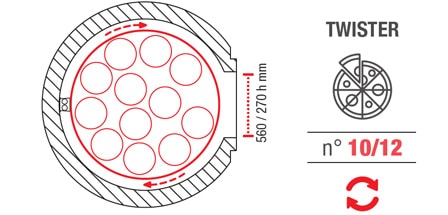 We have equipped the TWISTER with an Automatic gas Burner with Electronic Temperature Management. Frontal gas fire. At last anyone will be able to work in front of the Oven, and dedicate themselves entirely to preparing the pizza. Extremely simple to use, maximum hygiene, power consumption kept to a minimum, maximum space optimisation and excellent baking characteristics, make the GAS TWISTER that extra help that everyone would love to have on their premises. All the rotating Pavesi gas-fired ovens are supplied with an electronically managed gas burner.