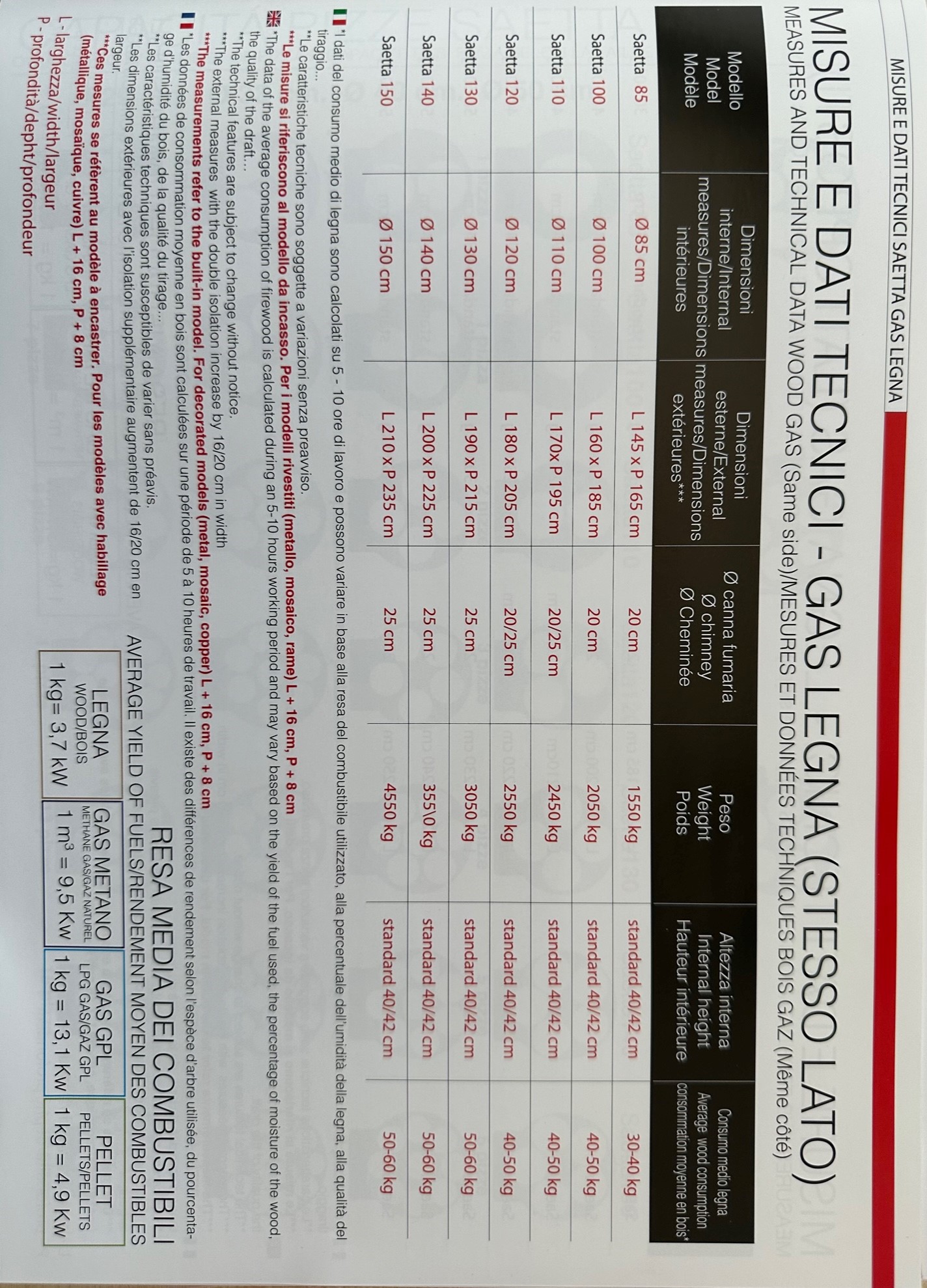EXHAUST FUMES: Ø 20 / 25cm suitably dimension allowing the release of fumes from the cooking chamber.