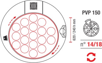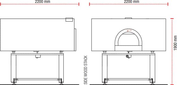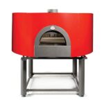 Baking surface cm.150 Pavesi rotating single block, capacity for 14/18 pizzas, single 62×24 opening, ideal for Tray Backed pizza, FLAT VAULT, round, high-thickness walls in refractory Cement, to further increase the heat accumulation (thermal flywheel) wood stack and ash discharge left, and right, it heats from 100° C. to 300° C. in approx. 60 minutes (data measured using dry wood and 20 cm. insulated flue). A Large, even Huge oven yet still extremely reactive. IMMEDIATELY retrieves the calories given off during baking. We are sure it will satisfy you and we sincerely hope that you will be able to exploit it 100%. All Pavesi rotating wood ovens can be supplied with the electronically managed gas burner Avanzini, including a special stainless steel protection that protects the nozzles of the burner from the soot of wood, so they can safely work with gas and with wood.