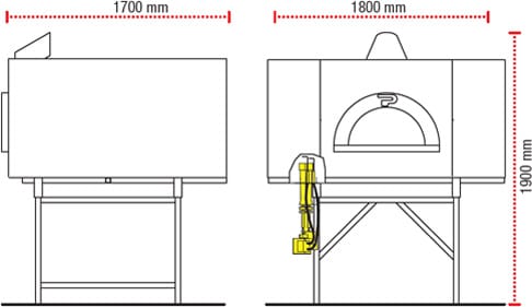 Perfectly circular, with a maximum capacity of between 8 and 10 pizzas. MONOBLOCK cooktop. Production capacity of over 100 pizza/ hour. One of our highest selling versions. The highest productivity at very low cost. The cooktop is made in a single refractory block with a thickness of 7 cm and an average weight of 250 Kg. All Pavesi traditional gas-fired ovens are supplied with an electronically managed gas burner.