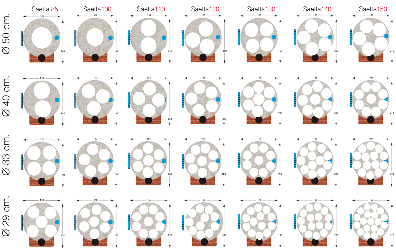 MOUTH OF THE OVEN: standard width of 60 cm. On request it can be done in different measures.